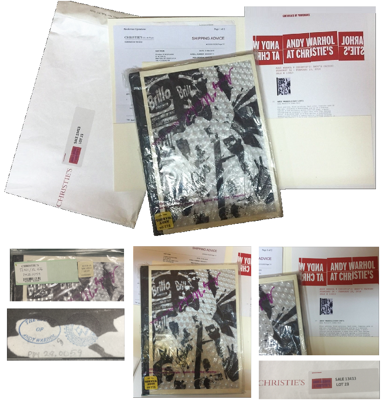 Christies invoice, and various purchasing documents, All works from the Andy Warhol Foundation for the Visual Arts were sold with a Certificate of Provenance, indicating the work originates from the Estate of Andy Warhol, and thence, the Andy Warhol Foundation for the Visual Arts. Christie's will maintain a database of these purchases which will be used to substantiate provenance in the future and supply relevant information to the Andy Warhol Catalogue Raisonné.