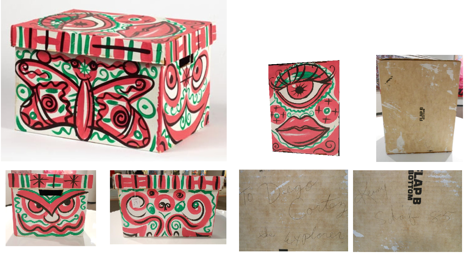 Acrylic on cardboard file box, Signed/Dated/Dedicated (verso) to Diego Cortez, UNIQUE.